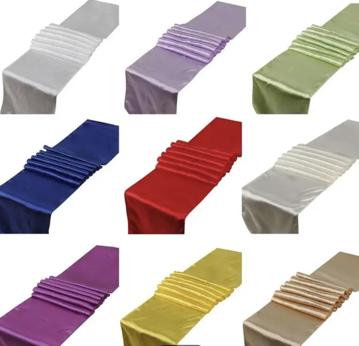 Disponibles en satin : bleu marine, blanc, ivoire, orange, bleu clair, violet, bordeaux et rouge ; en jute ; en gaze de coton : vert sauge, terracotta, noir et beige pour s’adapter à tous vos thèmes et ambiances.