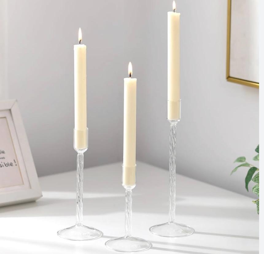 Les bougeoirs transparents sont vendus avec leurs bougies incluses, pour un rendu prêt à illuminer vos événements